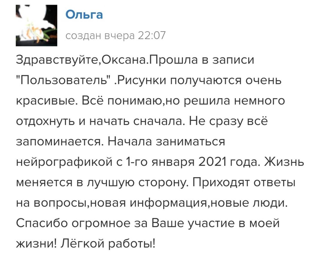 Начала заниматься Нейрографикой с 1-го января 2021 года. Жизнь меняется в лучшую сторону. Приходят ответы на вопросы, новая информация, новые люди.